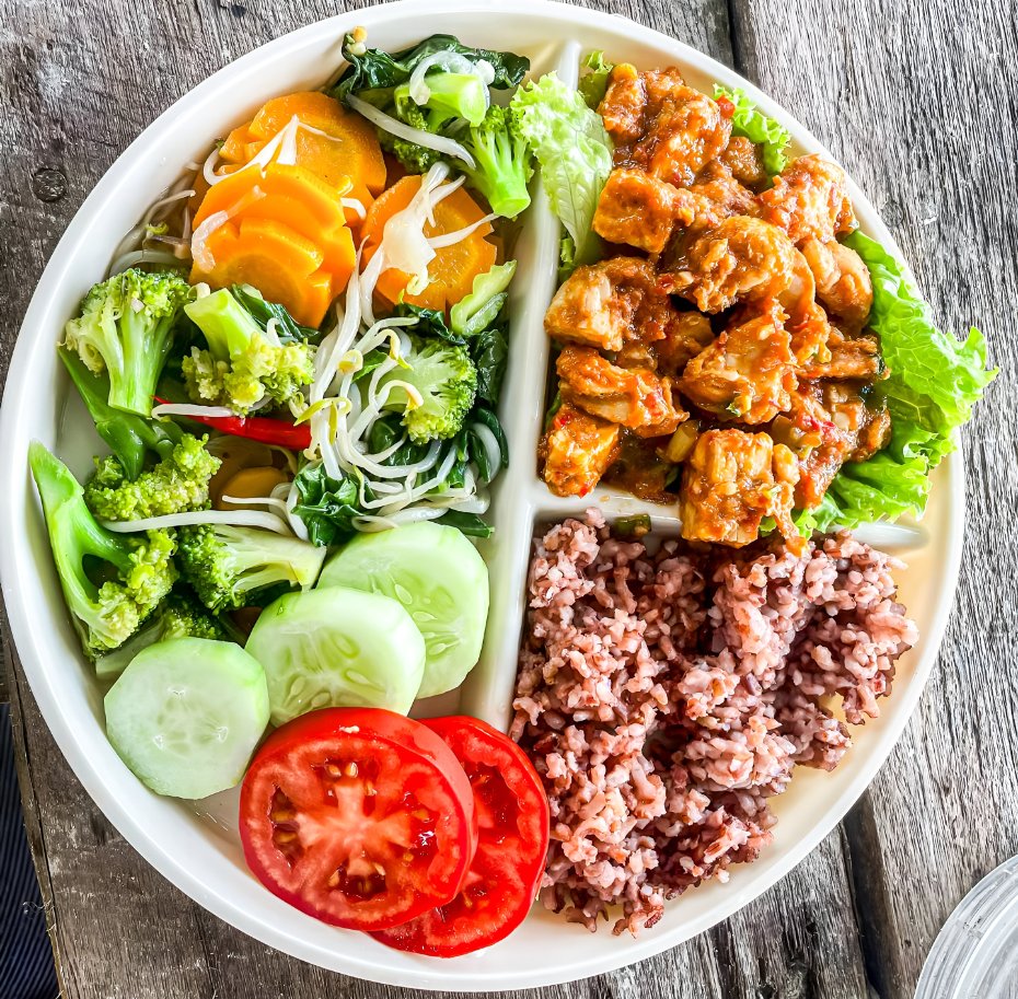 - Almoço: proteína magra (peixe, frango ou ovos), arroz integral e legumes.