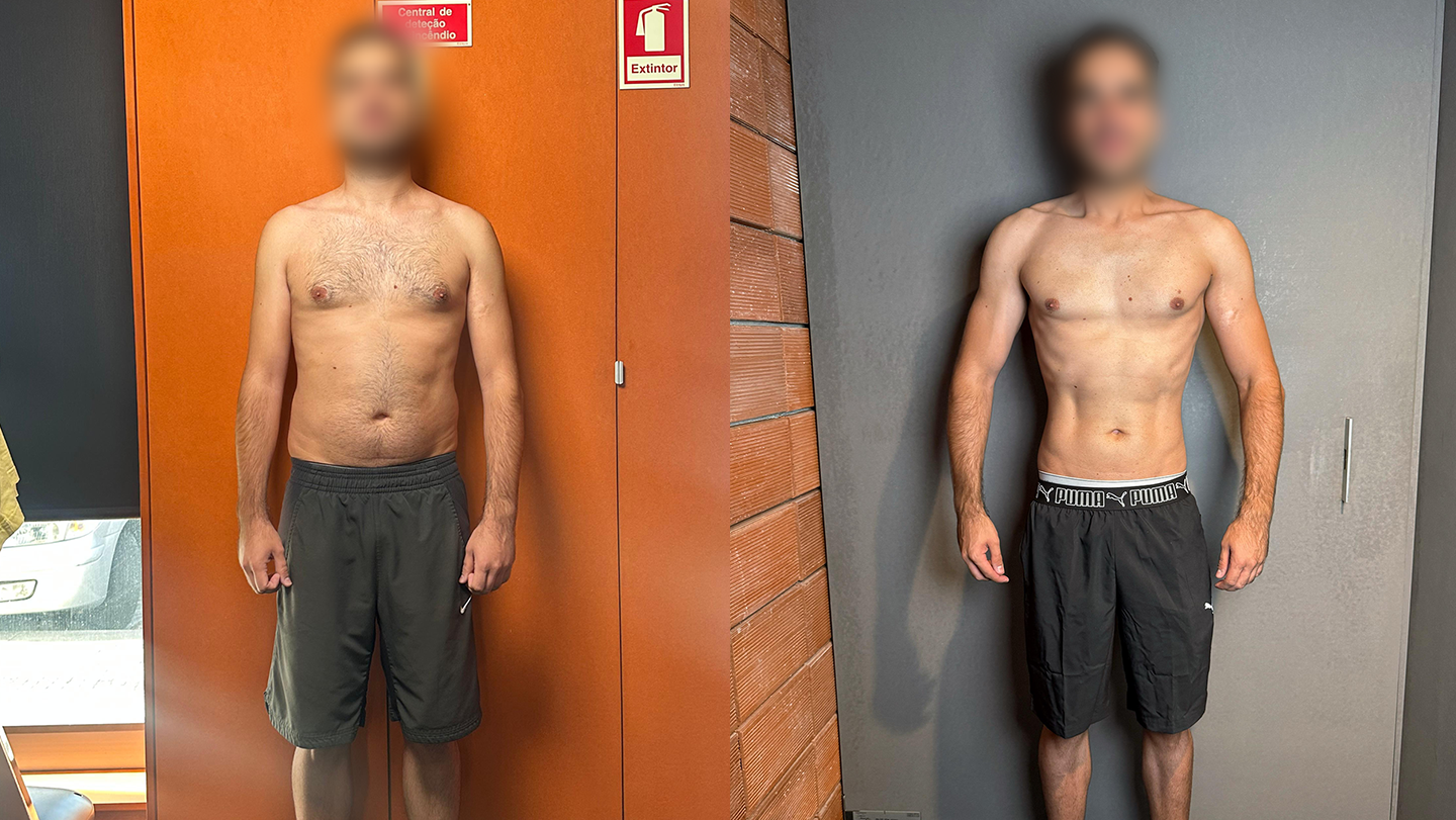 Mesmo durante a fase de perda significativa de massa gorda, conseguiu aumentar a massa muscular e a força, resultado de uma execução precisa e de um plano cuidadosamente estruturado.