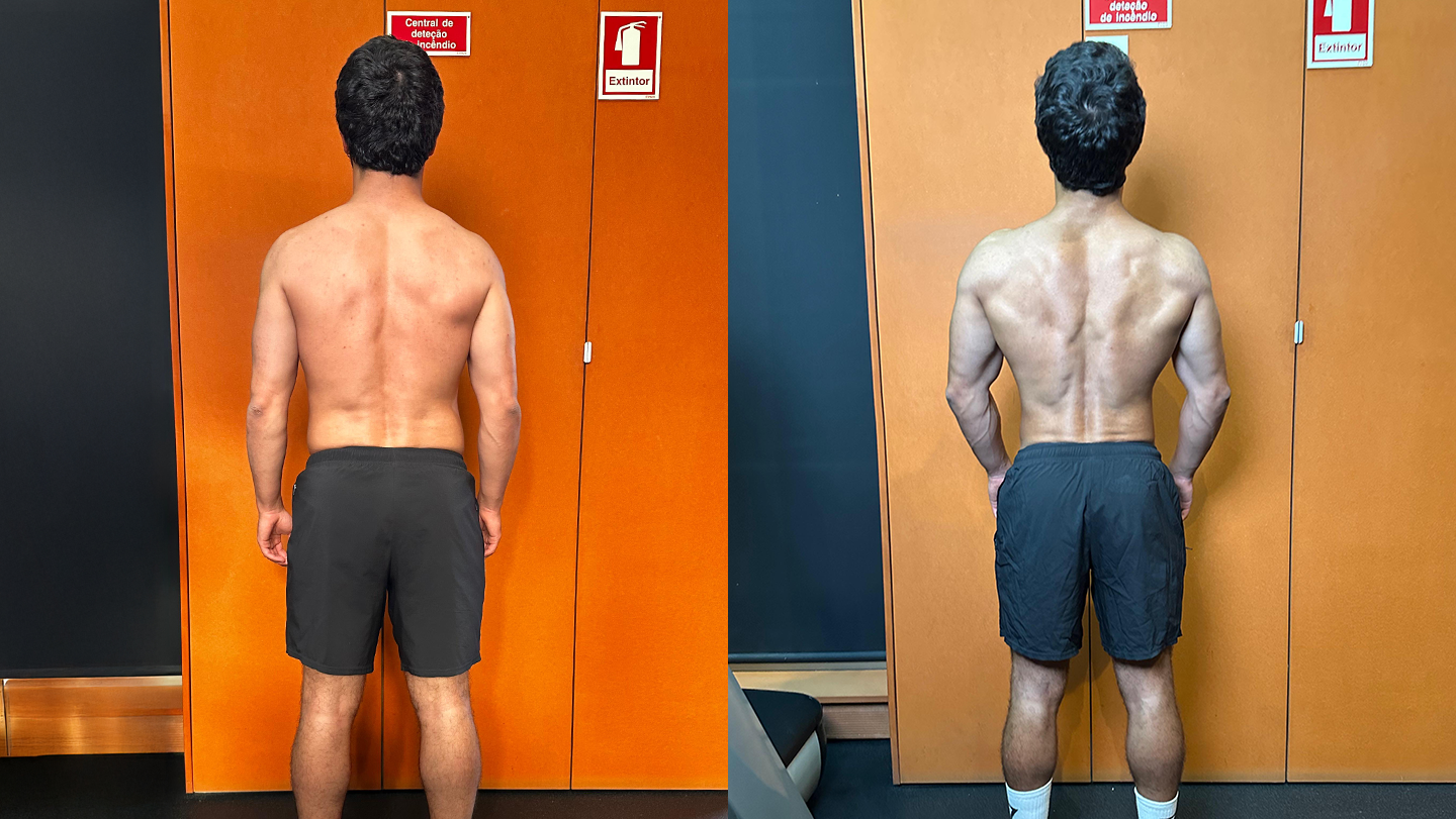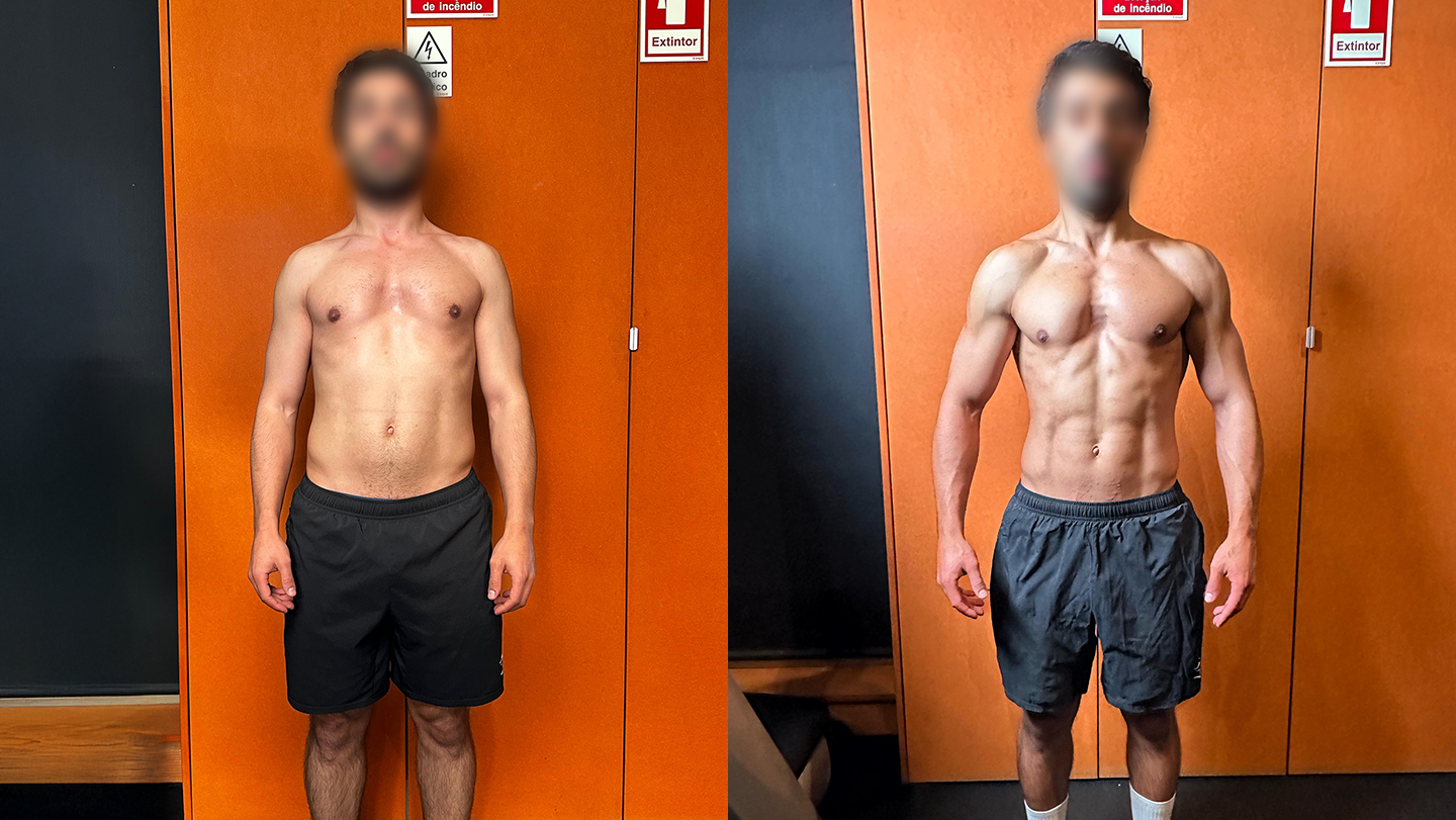 Do ponto de vista alimentar, o desafio foi mínimo: já tinha hábitos saudáveis e uma estrutura alimentar equilibrada, o que facilitou a otimização dos resultados. A transformação foi visível rapidamente — tanto na definição muscular como na força e postura.
