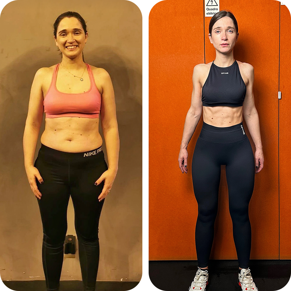 De 30,4% para 16% de massa gorda e menos 10,7 kg – uma transformação que reflete equilíbrio entre saúde física e mental, alcançada com consistência, resiliência e acompanhamento personalizado.
