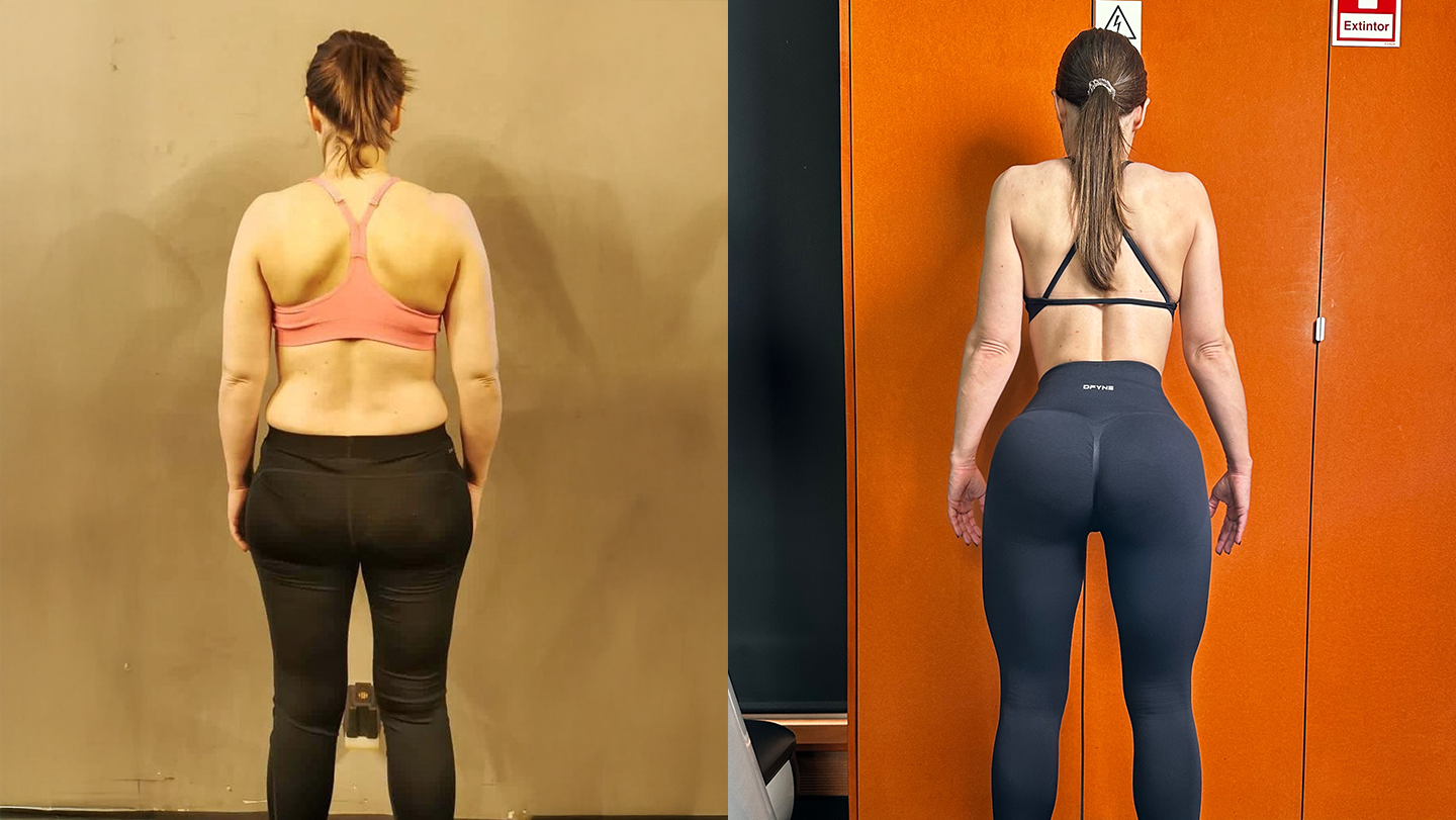 A transformação decorreu com duas sessões semanais de treino personalizado, centradas essencialmente no treino de força, ajustado em volume e intensidade à medida que a sua condição física evoluía.